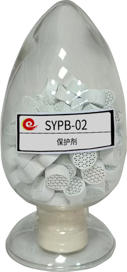 SYPB-02是負(fù)載適量金屬的蜂窩鳥巢保護(hù)劑,此保護(hù)劑是在高孔容大比表面積異形載體上負(fù)載優(yōu)選的活性金屬組元,可對原料中的膠質(zhì)和烯烴以及稠環(huán)芳烴、金屬進(jìn)行轉(zhuǎn)化和加氫飽和,達(dá)到防止壓降上升、延長運轉(zhuǎn)周期、脫膠質(zhì)、保護(hù)主催化劑的目的。