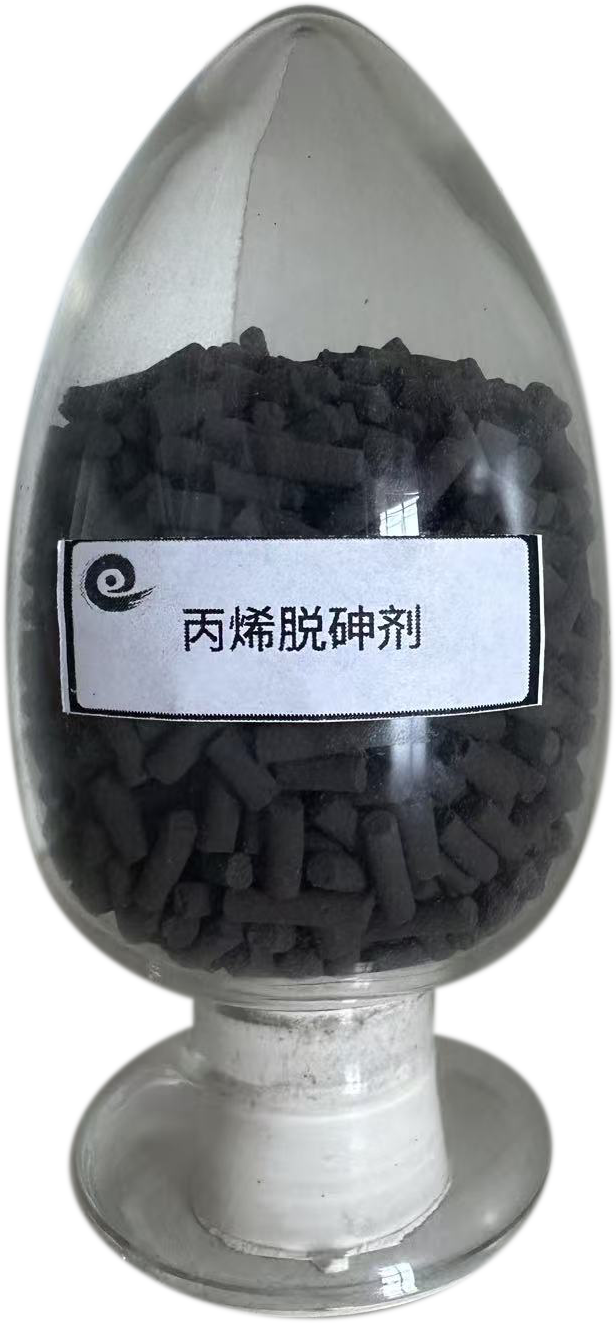 脫砷劑可在高空速和極高砷化氫濃度的工藝條件下使用,主要用于丙烯,乙烯等物料中砷化氫的脫除以保護后面的聚合催化劑及其它深加工催化劑。該產品還特別適合于催化干氣及催化干氣的乙烯提濃物料中砷化物的精密脫除。