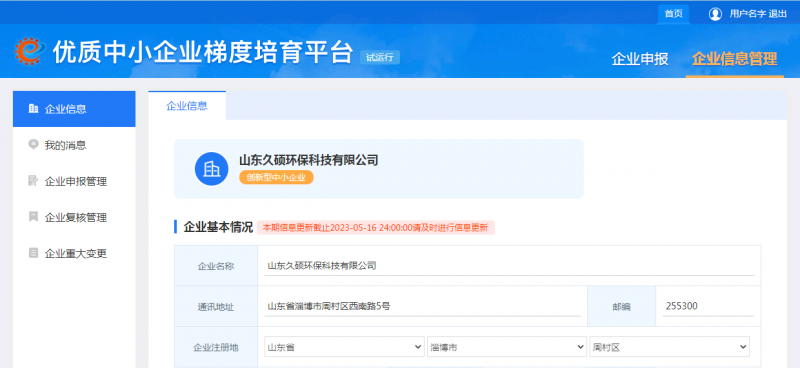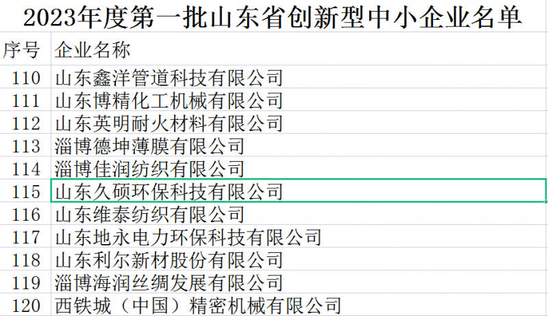 山東久碩環(huán)??萍加邢薰?,通過(guò)審核成為創(chuàng)新型中小企業(yè)