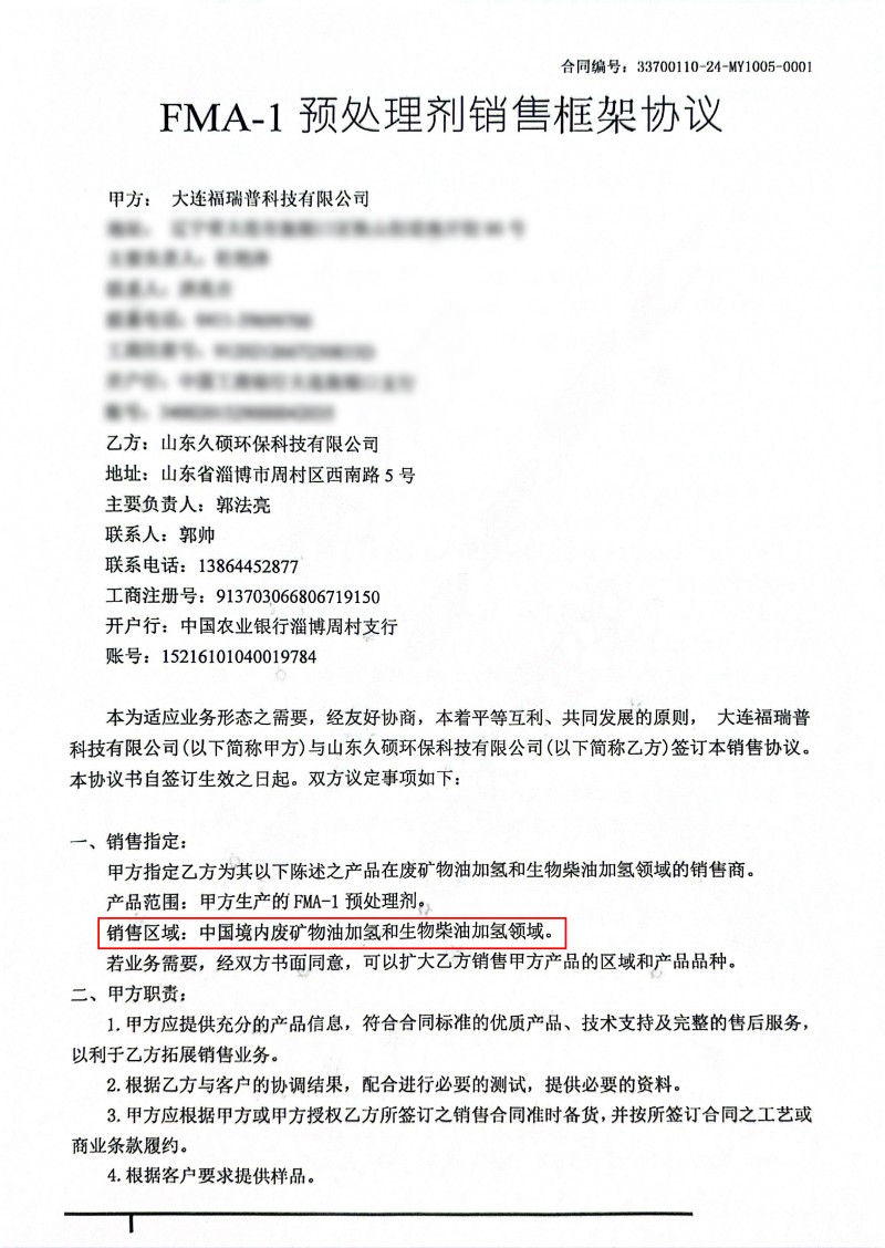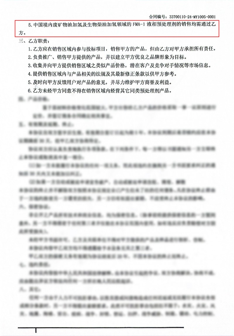 FMA-1已在新疆某企業(yè)5萬(wàn)噸/年全餾分油廢礦物油加氫再生裝置工業(yè)應(yīng)用,該套裝置采用均相預(yù)處理工藝,以FMA-1為預(yù)處理劑,取得良好效果,預(yù)加氫液收達(dá)99%,較對(duì)比劑提升8%,廢礦物油再生經(jīng)濟(jì)性大幅提升,受企業(yè)高度好評(píng)。